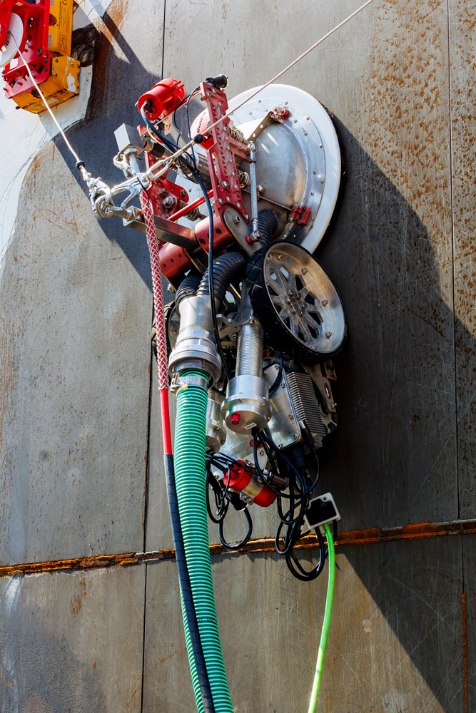 . usuwania korozji i powłok lakierniczych z powierzchni ferromagnetycznych - kadłuby statków i zbiorniki przemysłowe,